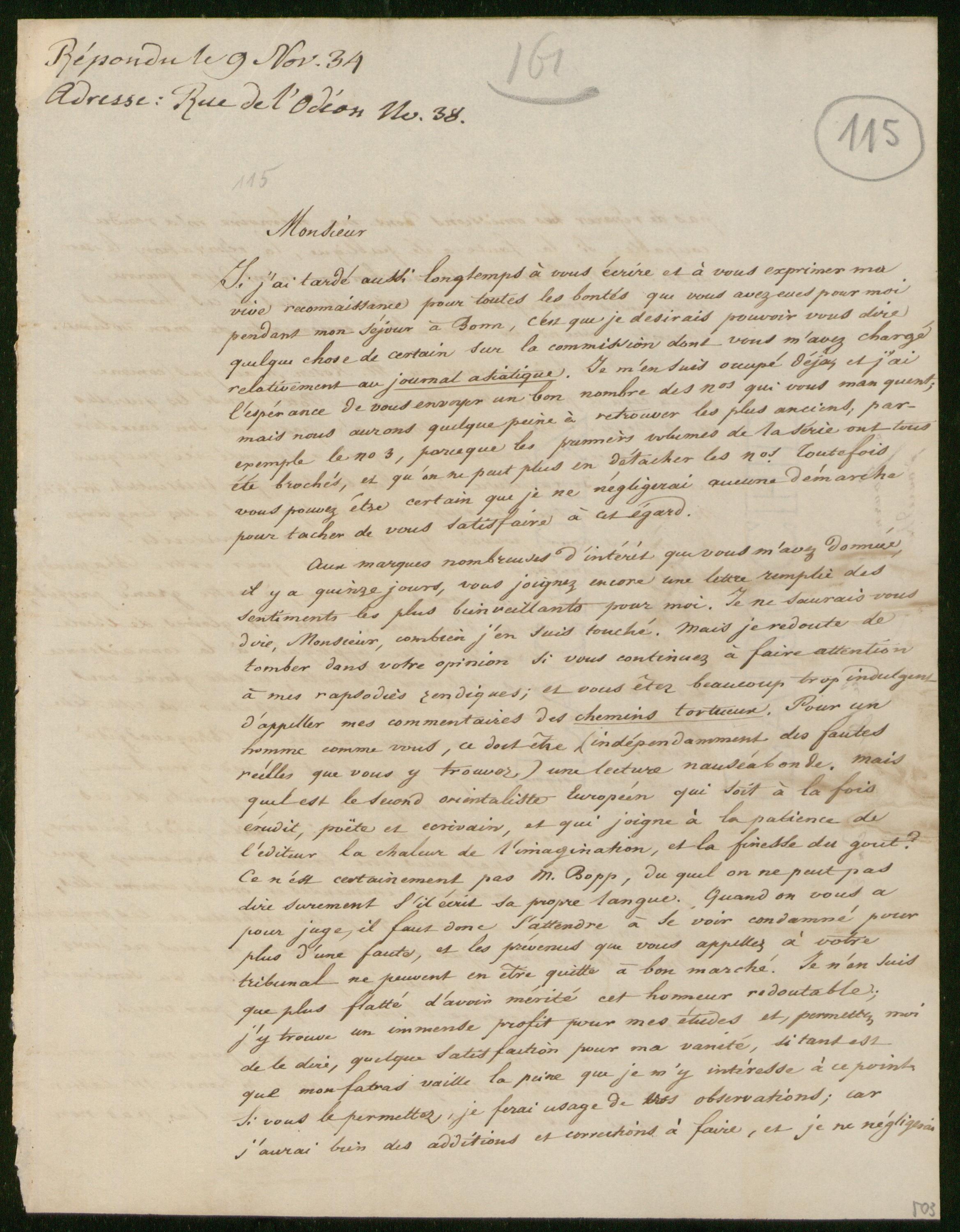 Eugène Burnouf to August Wilhelm von Schlegel