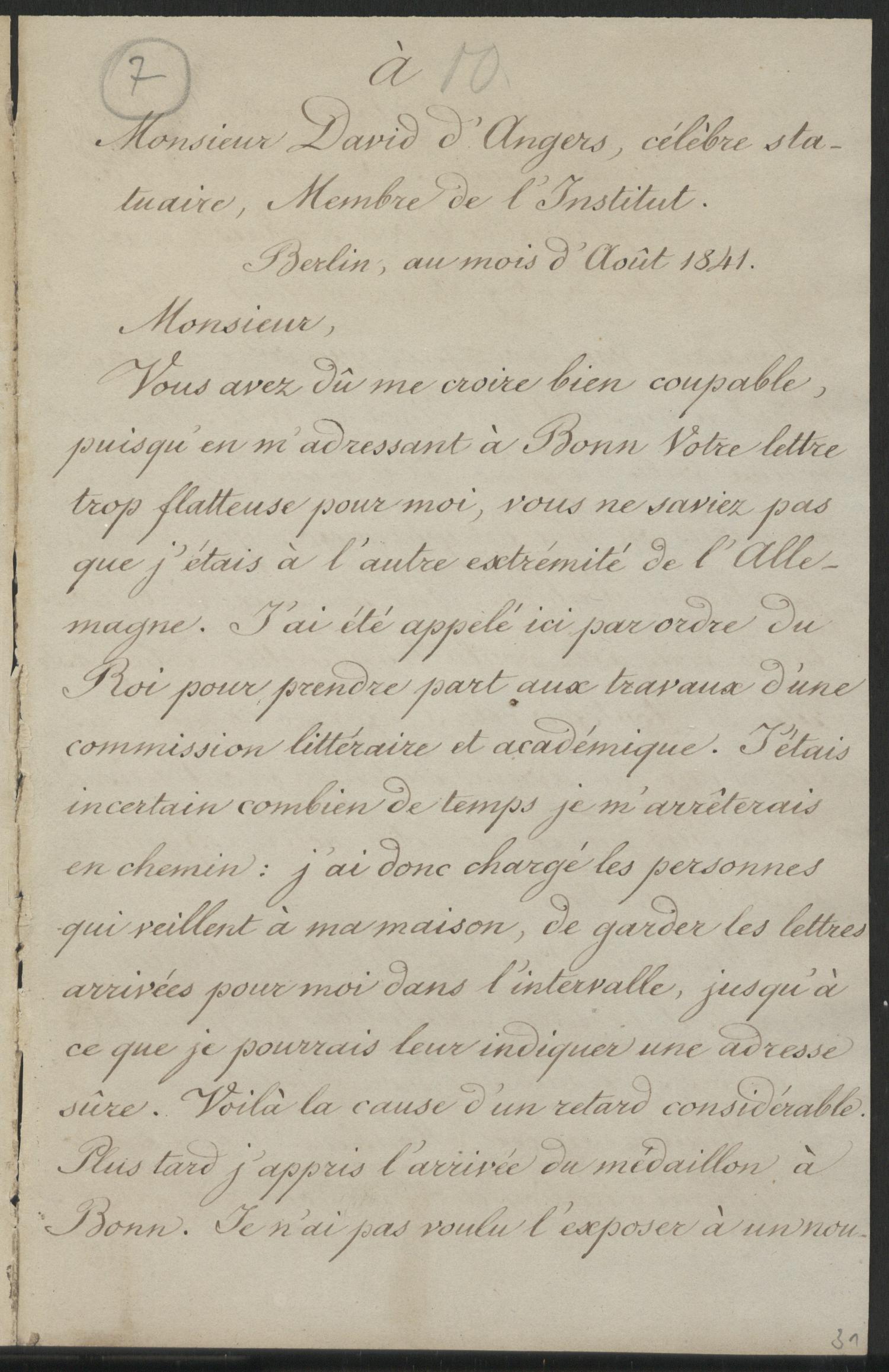 • Incipit: „[1] Berlin, au mois dʼaoût 1841
