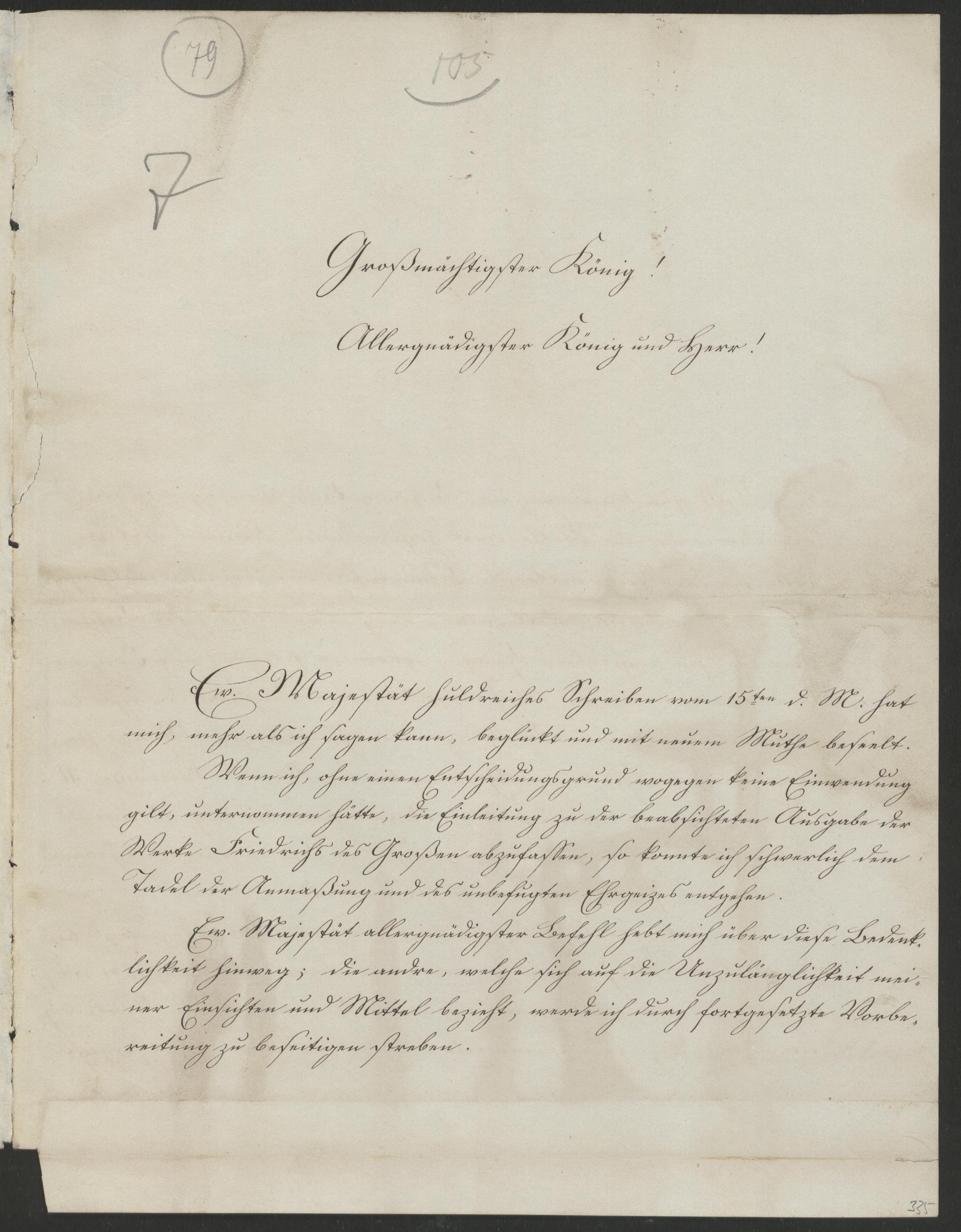 August Wilhelm von Schlegel to Friedrich Wilhelm IV., Preußen, König