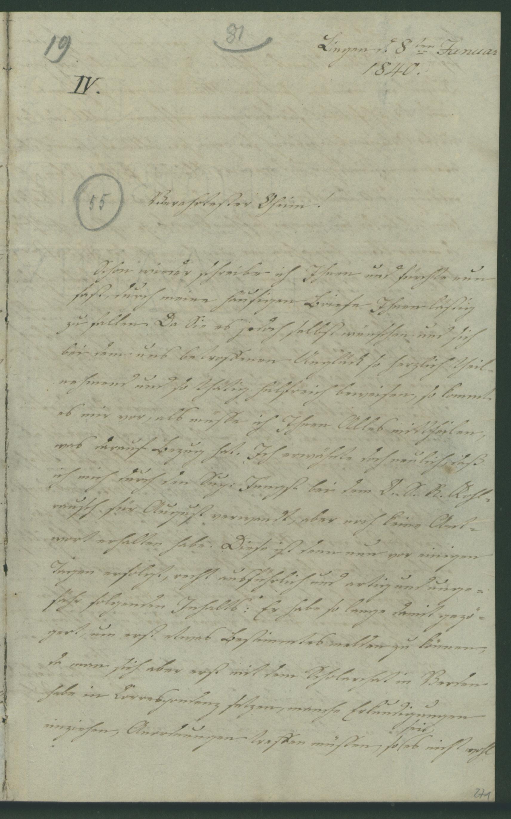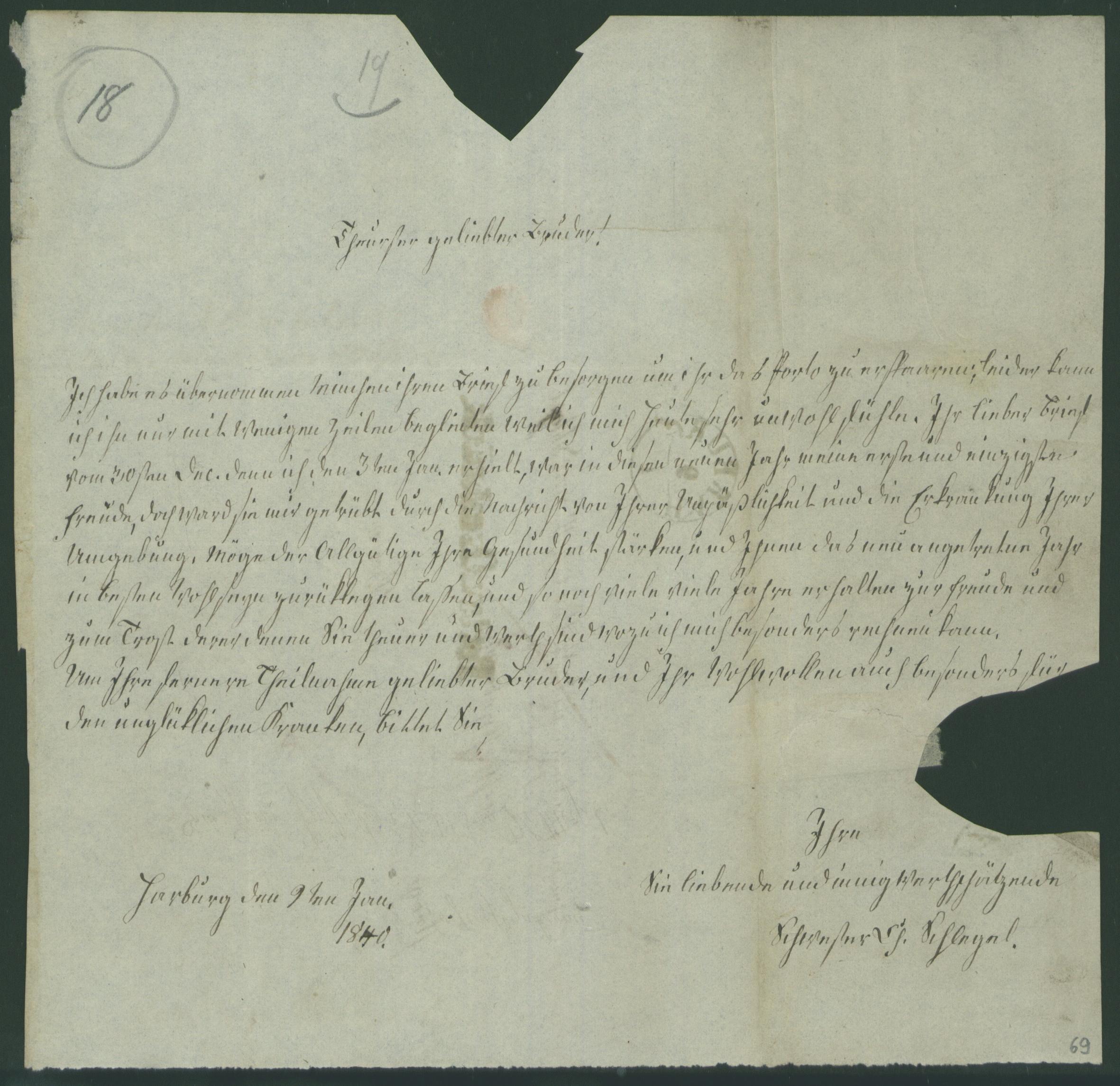 Mit Besorgniß denke ich daran wie der Aufenthalt in Hildesheim [3] auf August wirken wird, da er seine fixen Ideen ausgenommen recht gut weiß was um ihn her vorgeht, Gott gebe für ihn und für uns das Beste. Sie wünschen das Alter meines Bruders zu wissen, ich weiß es ganz genau, er ist den 10ten October 1839 51 Jahre alt geworden.